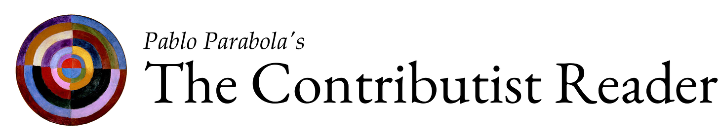 Contributism is an idea composed of many minds, and this publication is the work of many pens. By convention, all works in the reader are formally authored by our collective pseudonym, Pablo Parabola. If you like what you read, we invite you to subscribe, and if you love what you read, we invite you to become a contributor yourself by submitting an entry, which we will review and perhaps publish.